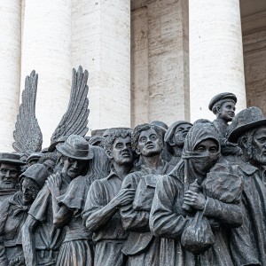 Rome doet je beseffen dat we goed moeten leven. Denkend aan hen die het minder hebben. Mooi, dat bezoekje aan Lampedusa, Paus ! Want de Paus zegt het ieder jaar weer met Pasen. En voor de zekerheid wordt het in Rome voor de eeuwigheid opgeschreven. Met het wegvallen van Sinterklaas is dat nu nog belangrijker geworden. Alleen als we voldoende scoren bij het laatste oordeel mogen we richting hemel. Onderweg kom je dan langs de koepel van de St Pieter. Pak hem -en route naar de hemel- mee! Het is de moeite waard en scheelt je 540 treden traplopen. Maar besef, de man met de zeis blijft je in de gaten houden. Ook jij bent een keer aan de beurt !